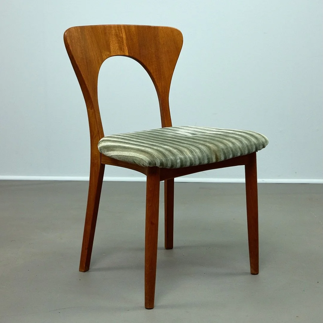 Uldum Møbelfabrik, sechs Stühle / Esszimmerstühle, Teak, Wollstoff, 1960er Jahre, Dänemark